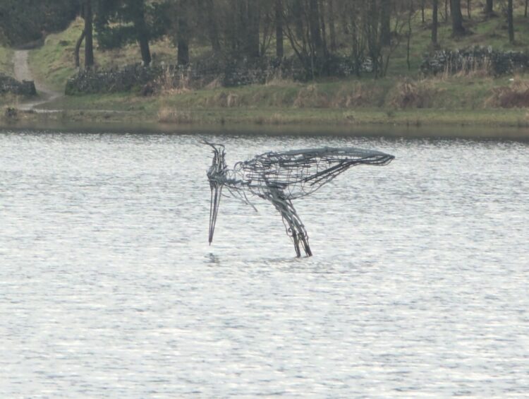 I walked around the south side of Turton and Entwistle Reservoir and then through Fox Hill Plantation on the north side to emerge near the heron statue. I then followed the lake shore before cutting up the hill to New House Farm and then the famous Strawbury Duck pub.