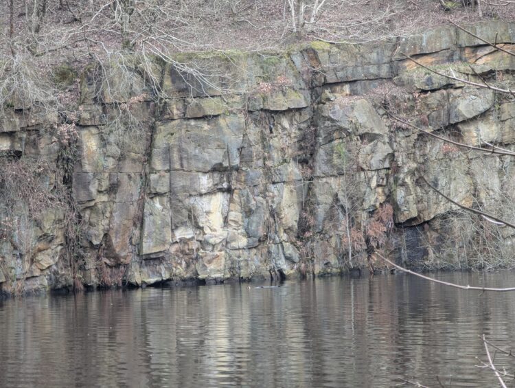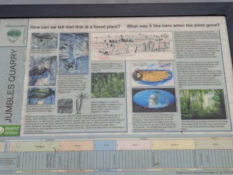 From there, the path follows the outflow from Wayoh Reservoir to the final reservoir of the day, Jumbles. The path passes through the part flooded Jumbles quarry, where an information board will help you pick out fossilised trees in the quarry face opposite the path.